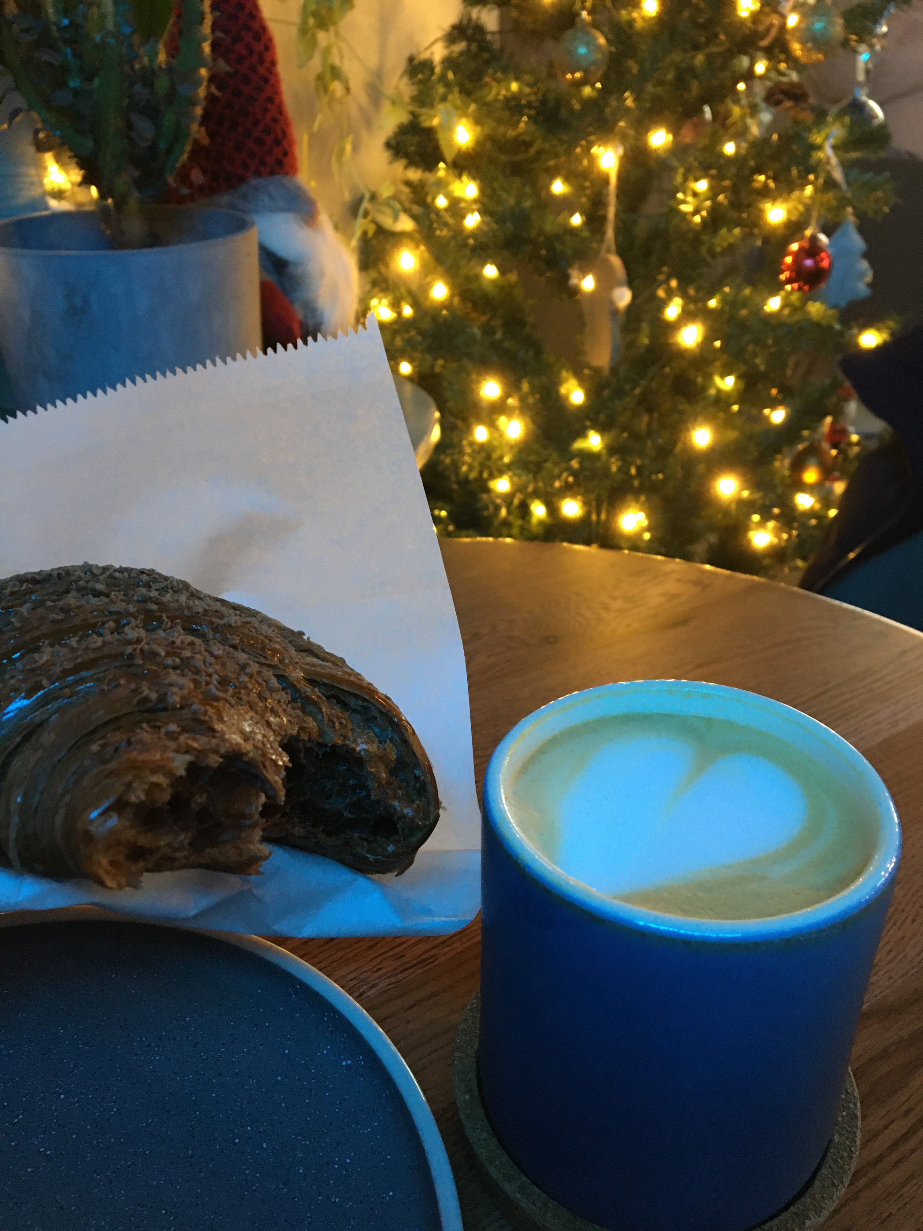 Чертовски милые бариста) отличный капучино, огромный хрустящий круассан с шоколадом. Много начинки, понравилось.